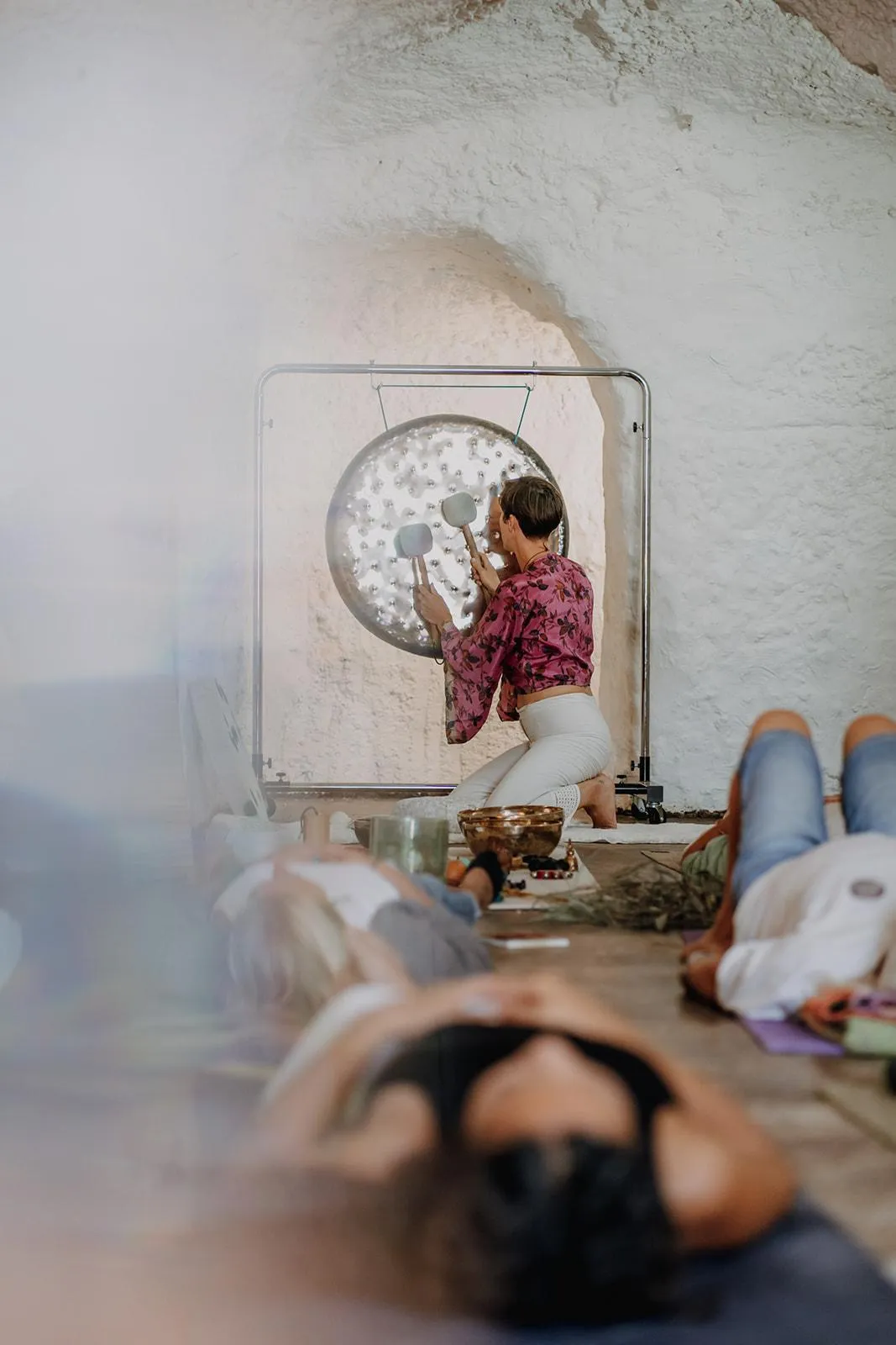 By sleeping in a cave deep underground, you will experience a sensation of tickling inside your body, caused by the Earth's frequency. This is known to activate the body's self-healing abilities. This stimulates cell regeneration and relaxes the nervous system. Nowadays, overstimulation and information overload cause 90% of all diseases. I have also selected a special collection of healing instruments and sounds to support this effect. These include a handmade gong tuned to the Earth's frequency, authentic handmade singing bowls from northern India, and specialised instruments that I crafted myself to have full control over the energies.